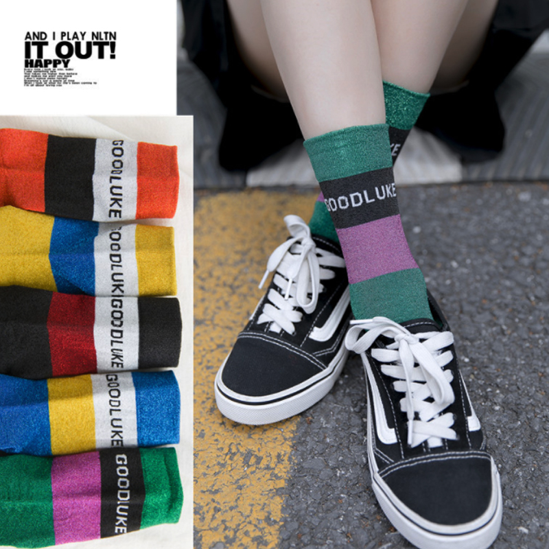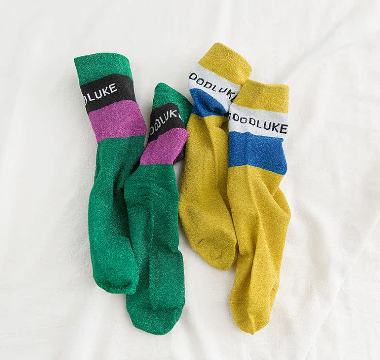 Bright silk socks girls Korean gold and silver wire socks Japanese ins color ulzzang Street wind orange tide socks