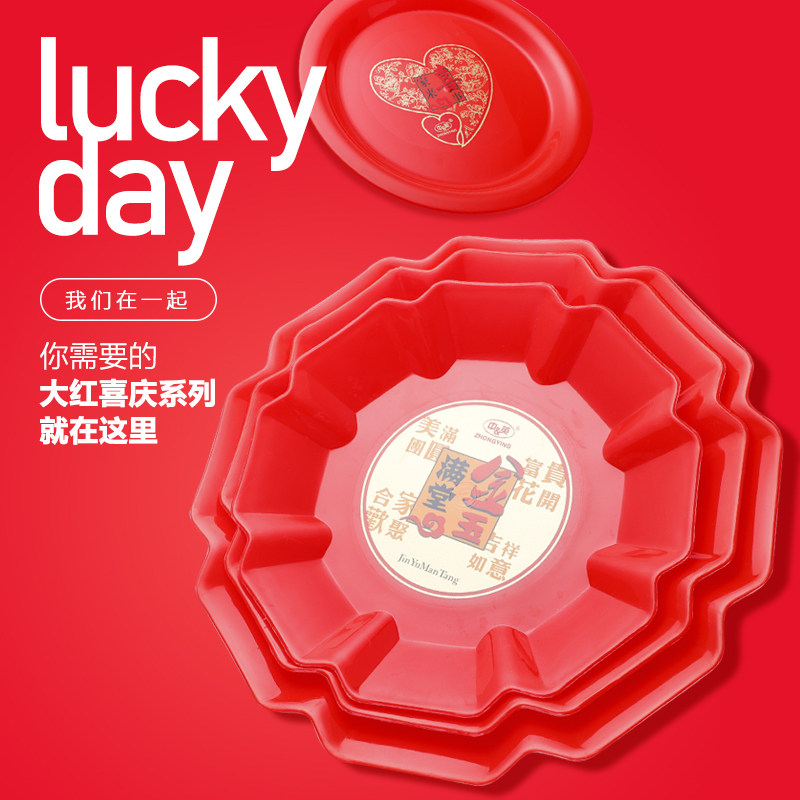 China-UK wedding festive red gold round plastic Hee-tray water fruit pan wine glass toast with tea wine wedding dowry