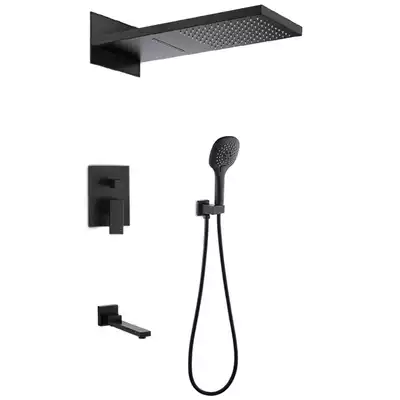 Avis black concealed shower in-wall embedded box mixing valve set full copper shower screen Waterfall hotel