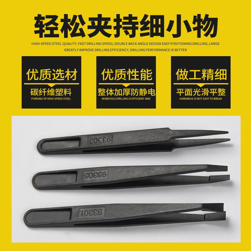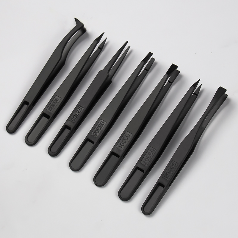 10-pack anti-static plastic tweezers black pointed flat head elbow round head wide mouth electronic factory special tools maintenance