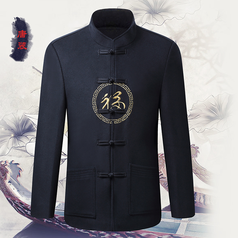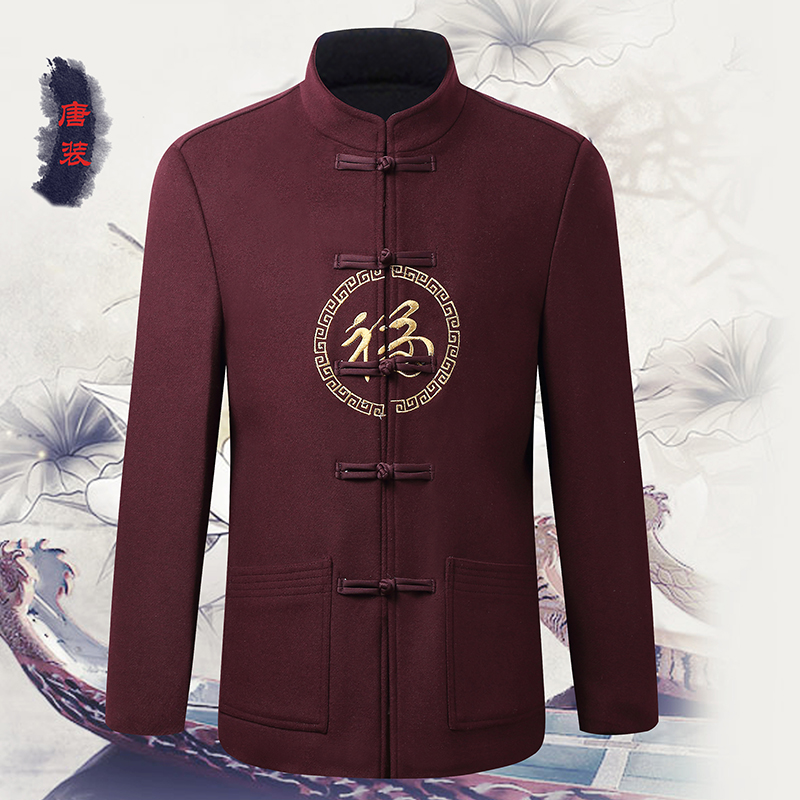 Wool Coat with male Chinese Customs Aged elderly Lovers Grandpa Autumn Winter Red Coat Chinese Style Daddy Clothes