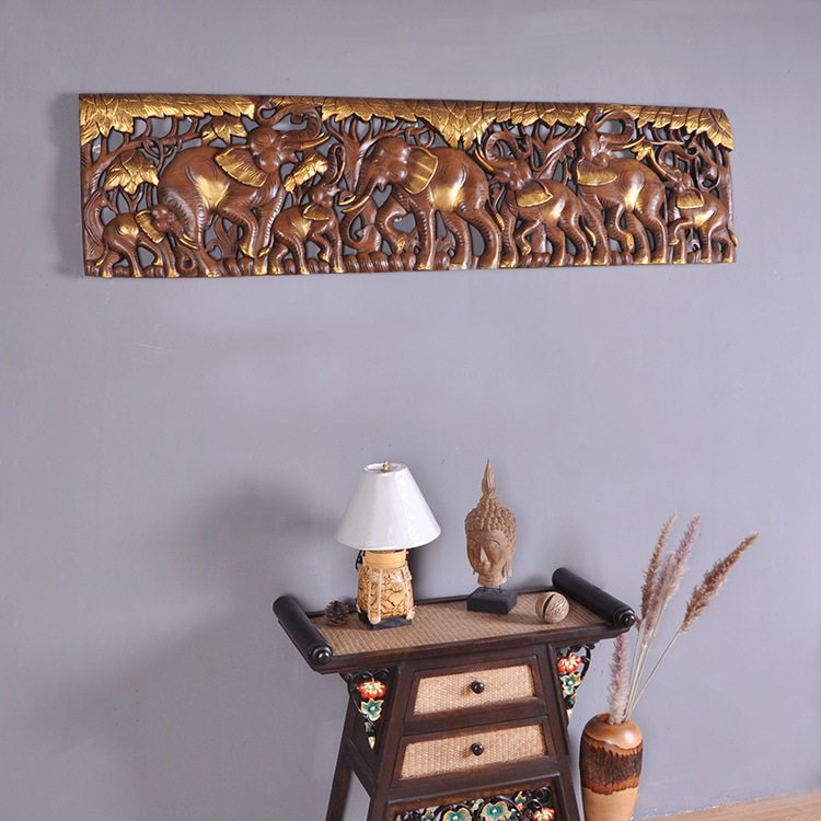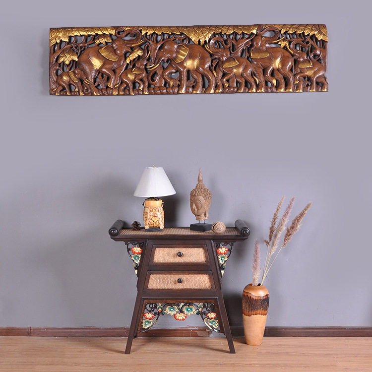 Thai Import Craft Gifts Swing to Southeast Asia Grapewood Carved Elephant Wall Decoration Wooden Banner Adornment Carved board