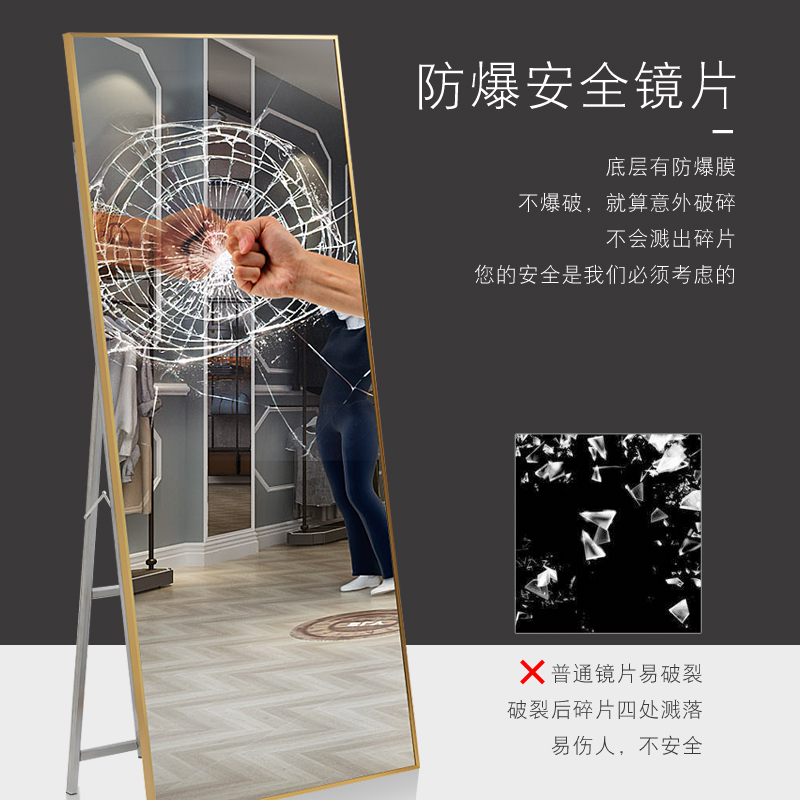 ins clothing store mirror Full-body full-length mirror Aluminum alloy thin beauty elongated floor mirror wall fitting mirror