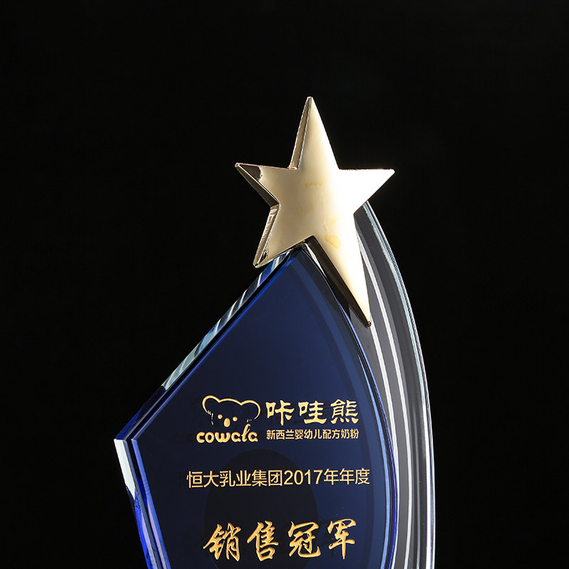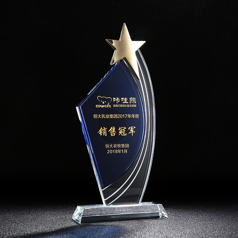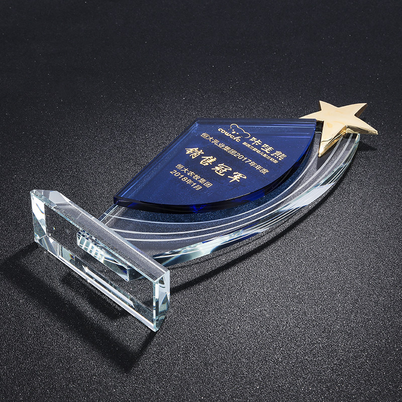 Crystal trophy personalized customized trophy medal blue metal pentacle company annual meeting award sports competition