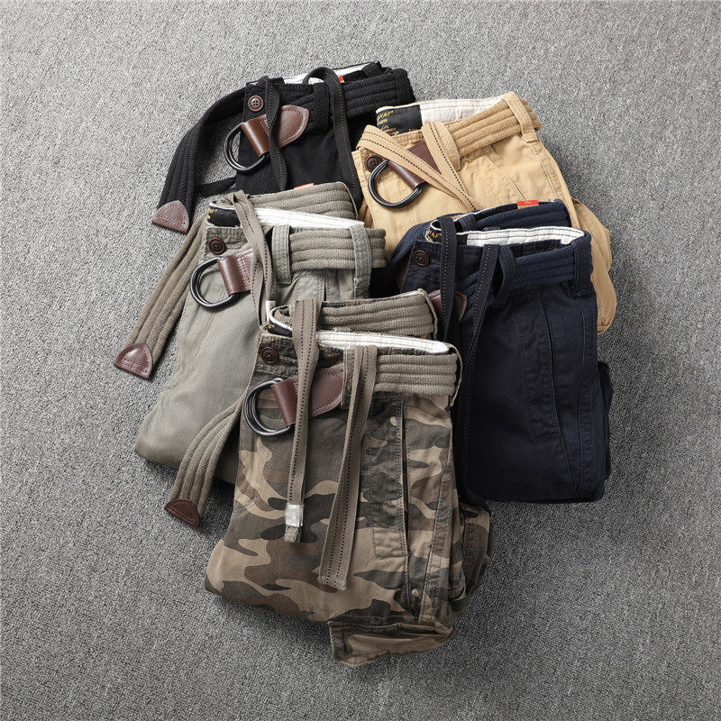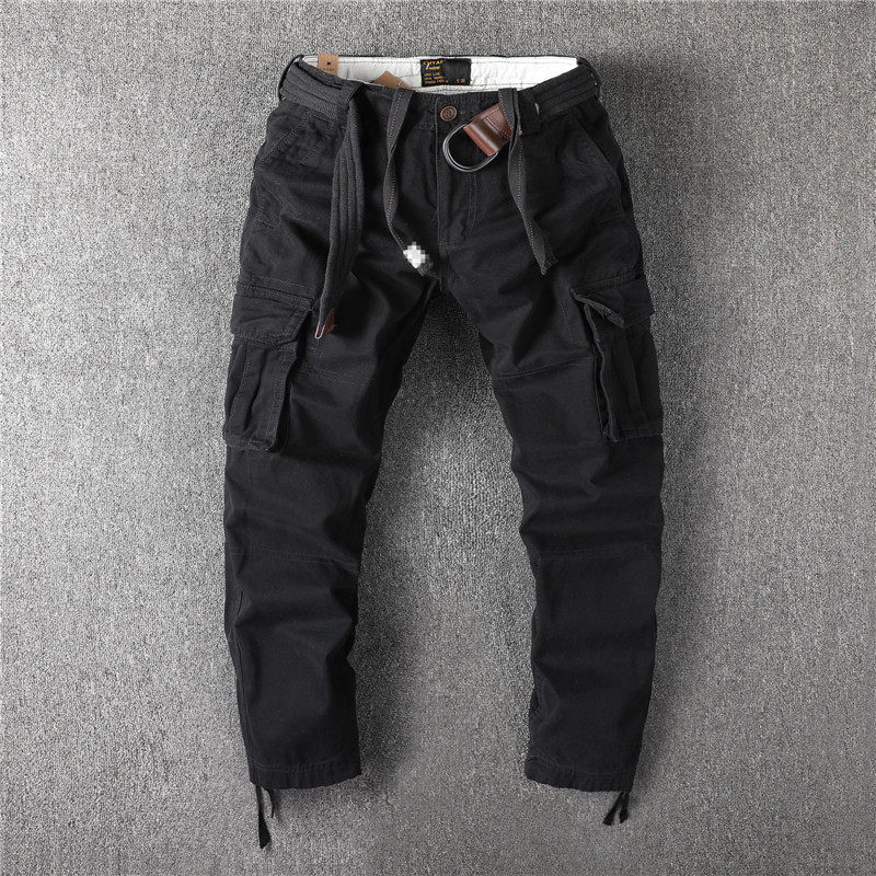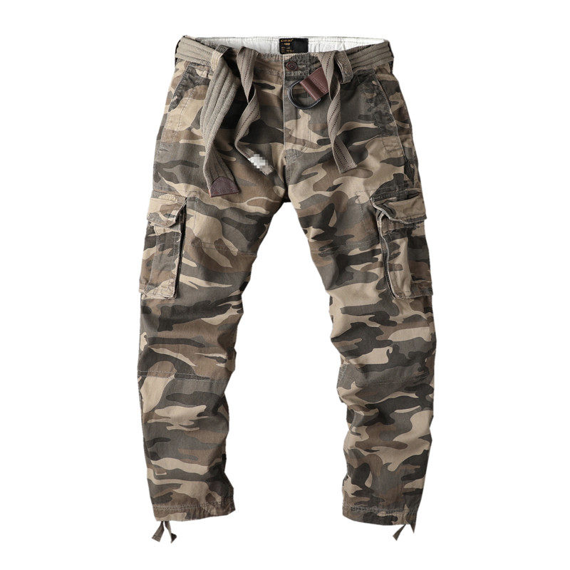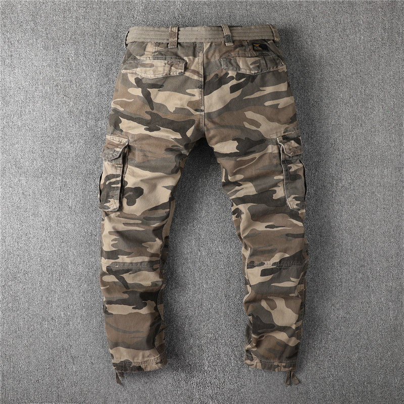 European and American retro straight drum army brigade camouflan multi-pocket tooling long pants outdoor thick solid cotton autumn and winter men's pants