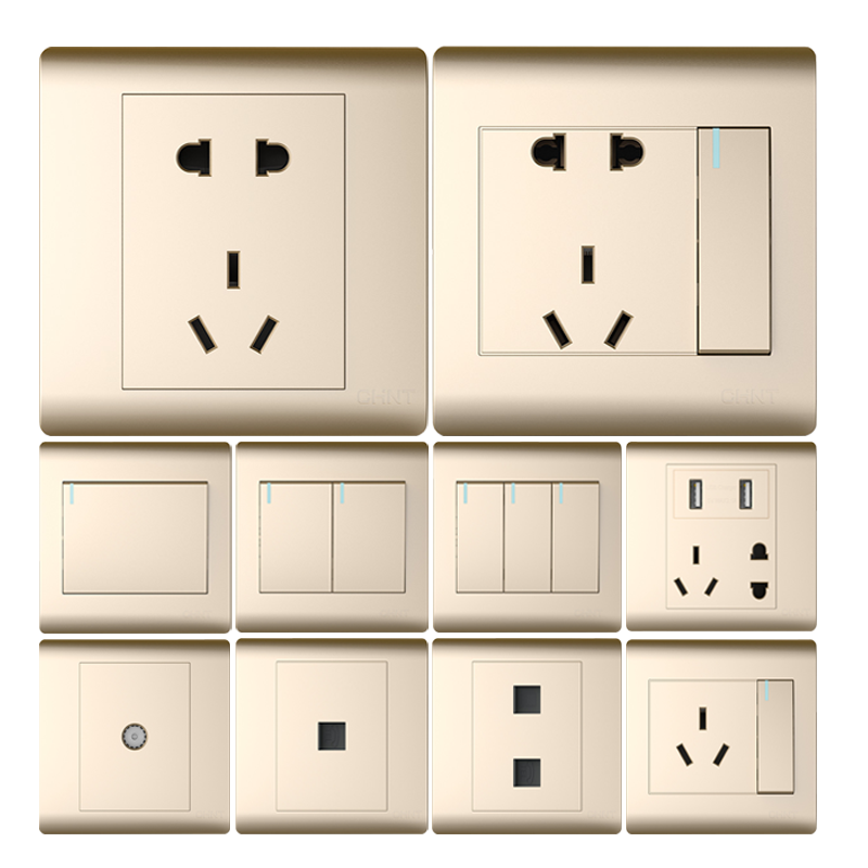 Zhengtai switch socket household champagne gold wall wall concealed dark line 86 type with 5 five-hole panel switch