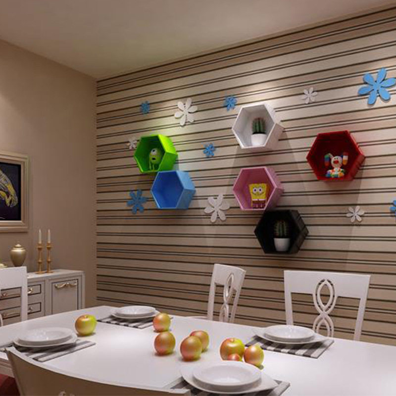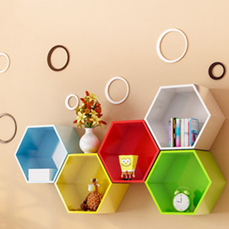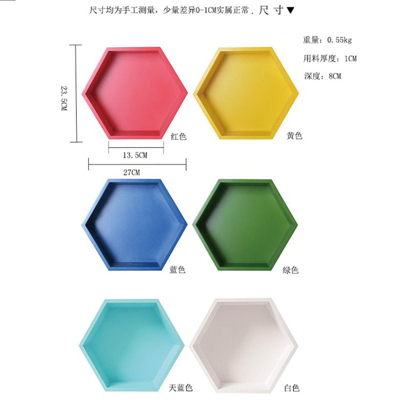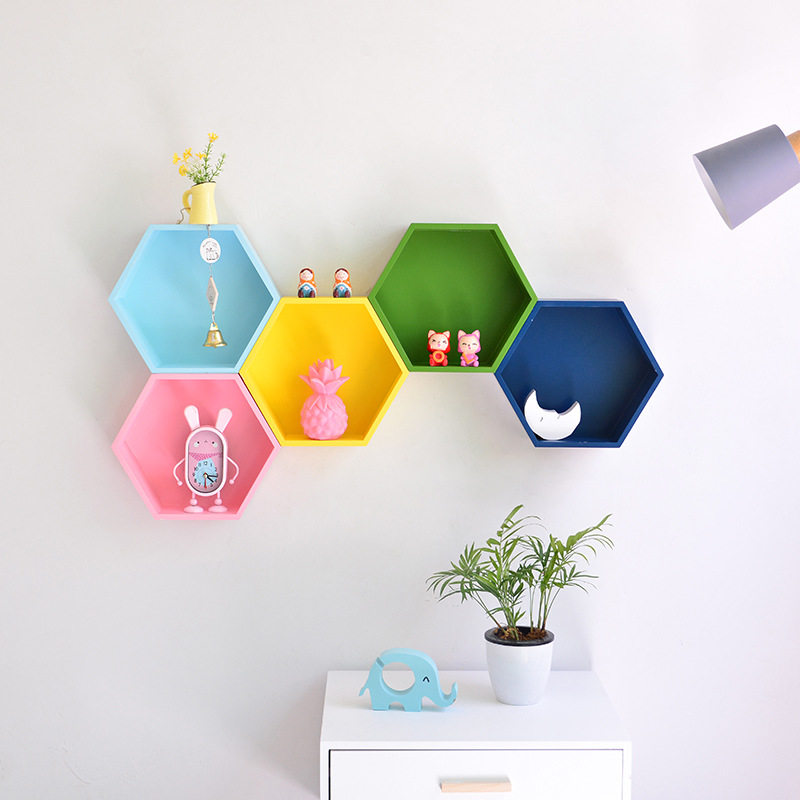 Nordic INS simple wood color hexagonal shelf creative punch-free wall shelf home decoration