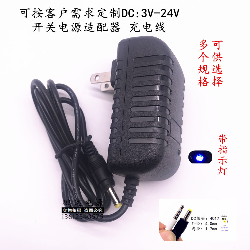 4 0*1 7mm plug 5V2A 6V0 8A 7 5V1A9V1A12V2A switching power adapter charging cable