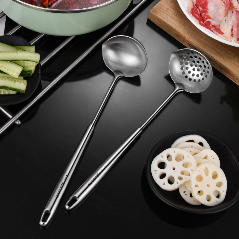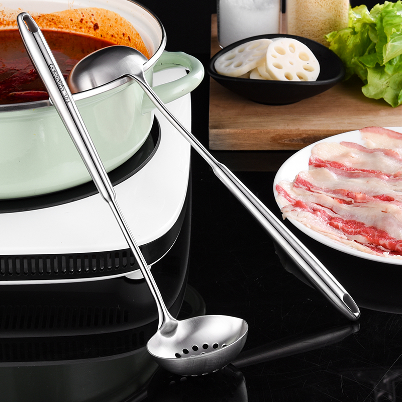 Diversion nozzle leak-proof hot pot spoon 304 stainless steel long handle anti-scalding large soup spoon with soup spoon Leaking Spoon Suit Home