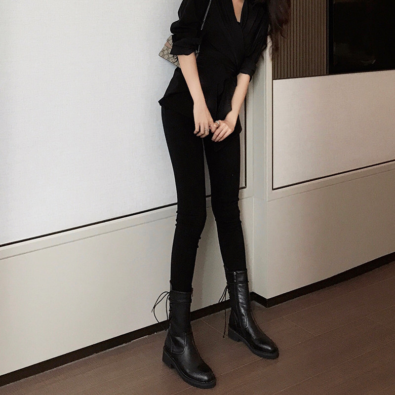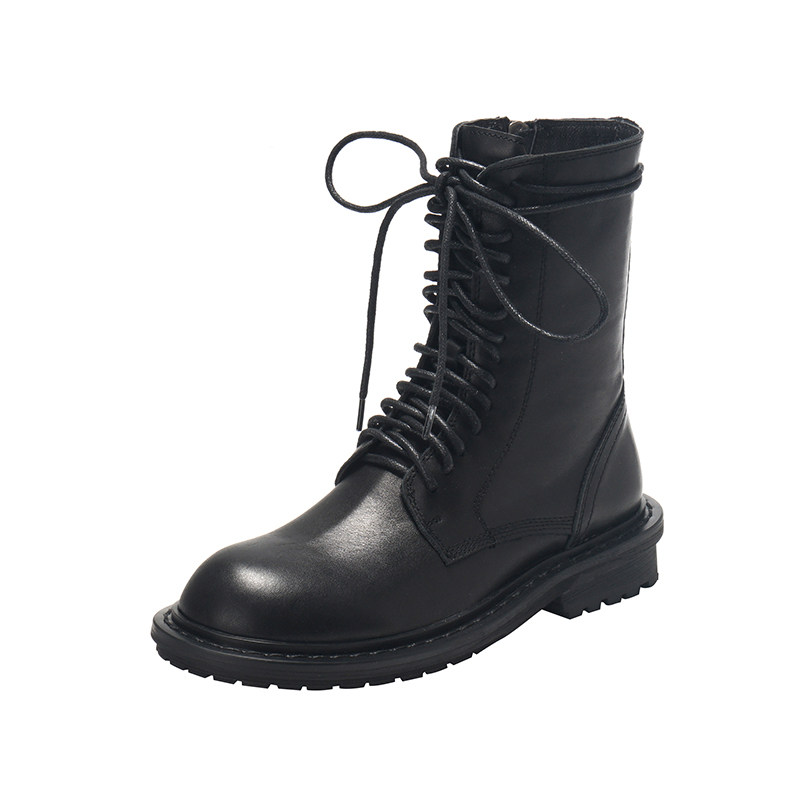 Cowhide ~ Leather Lace Up Flat Side Pull On Martin Boots English Style Mid Heel Boots Knight Short Boots Women