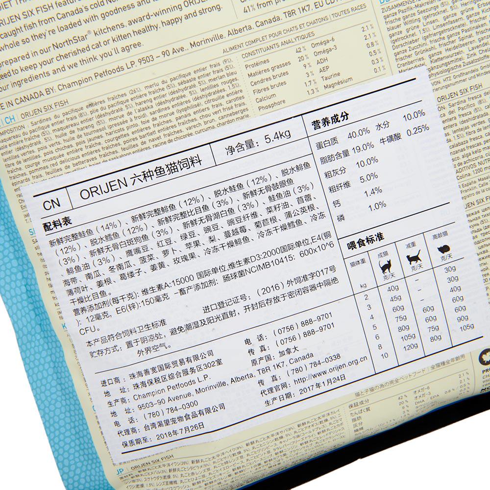 Orijen eager cat food Canada imports natural grain-free 6 kinds of fish adult cat kitten food general cat food 5 4kg