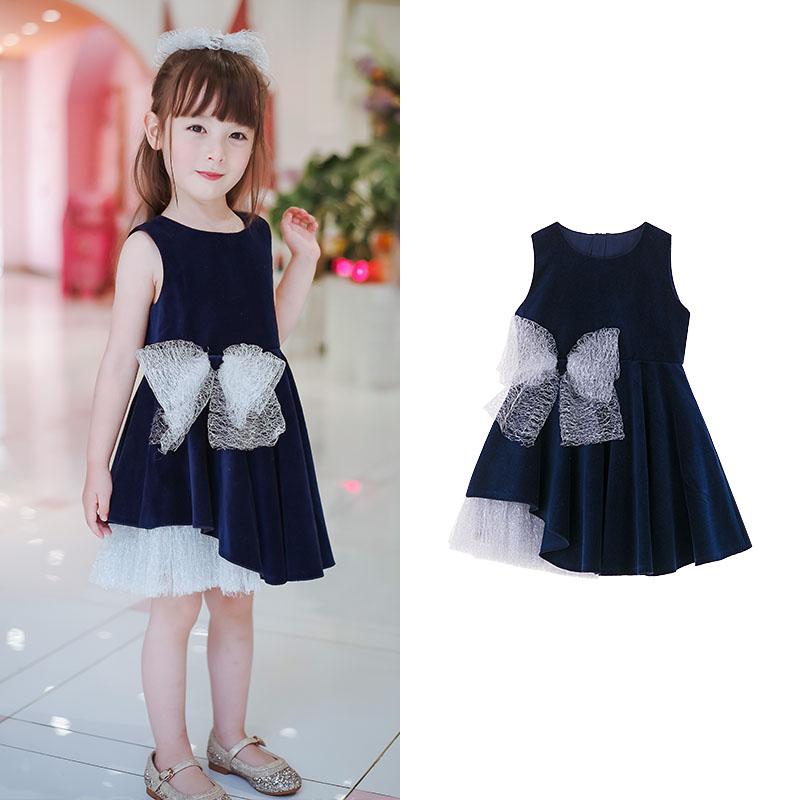 Toullejour girl's clothing spring autumn heat pin asymmetrical wave pendulum bright silk velvet gown dress dress
