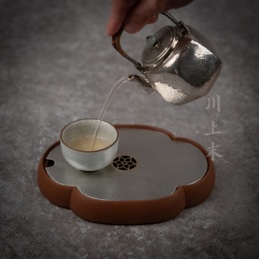 At the end of Kawakami Purple sand pot mat Hand-made tin pot Cheng Tin Japanese dry bubble table tea plate pot holder Coarse pottery tin cover Jianshui