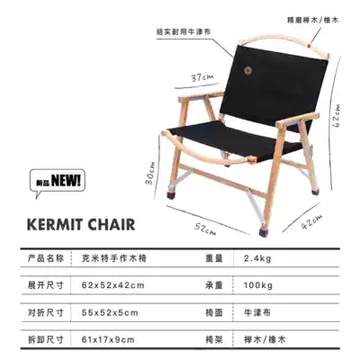kermit Chair Outdoor Camping Solid Wood Chair Self-driving Tour Picnic Fishing Portable Folding Oak Chair