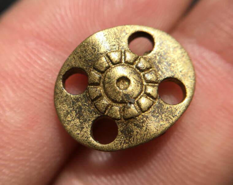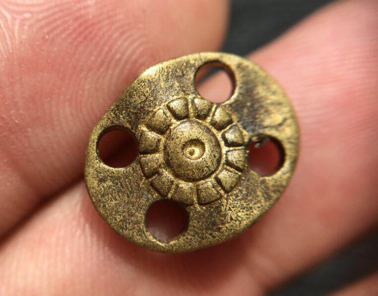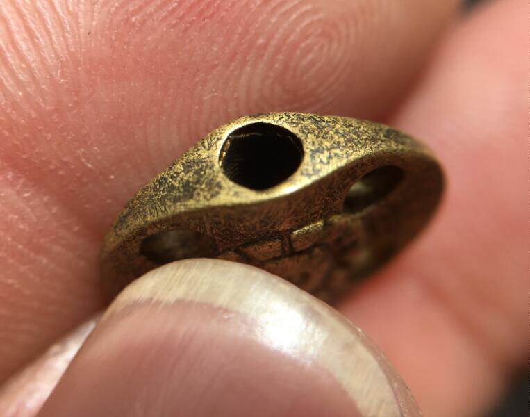 Tibet pure bronze with gold five eyes six through old back cloud Tibetan Buddhist pearl pendant bag old Baozhen