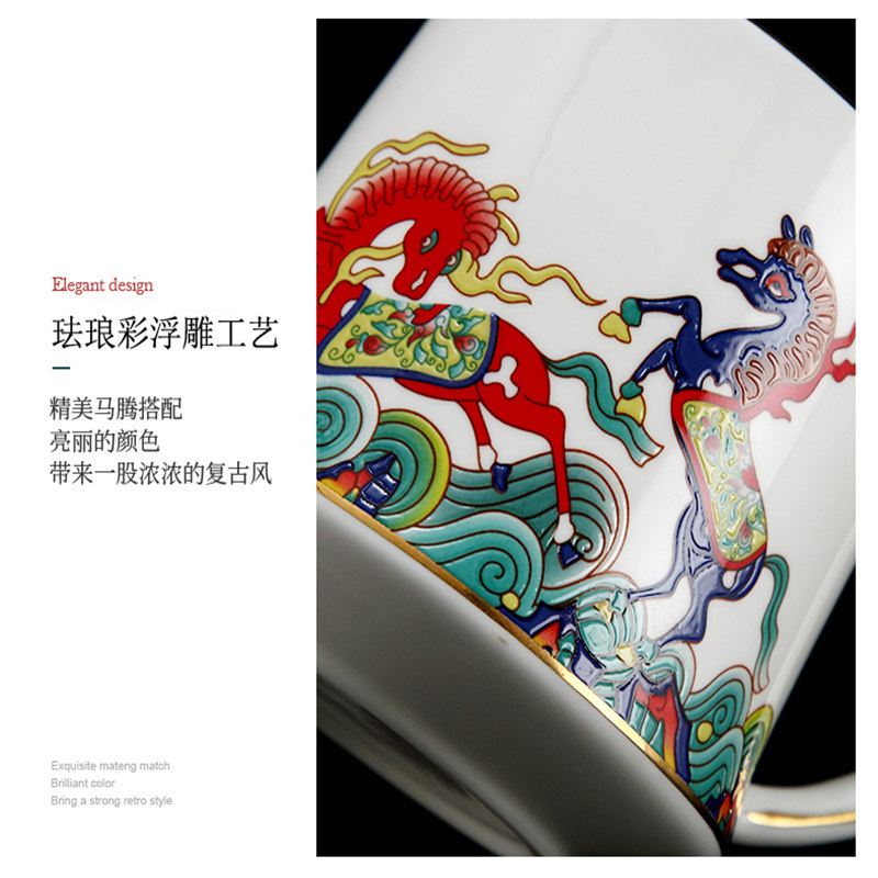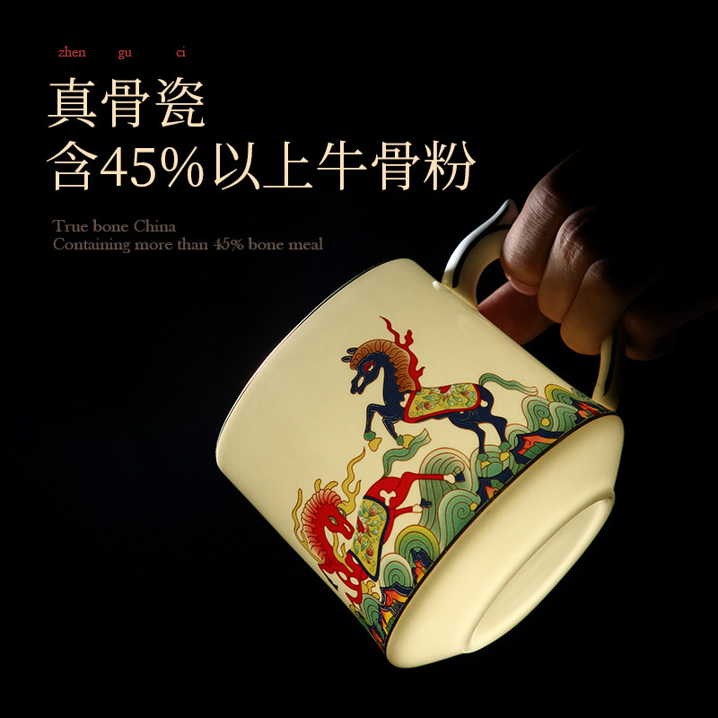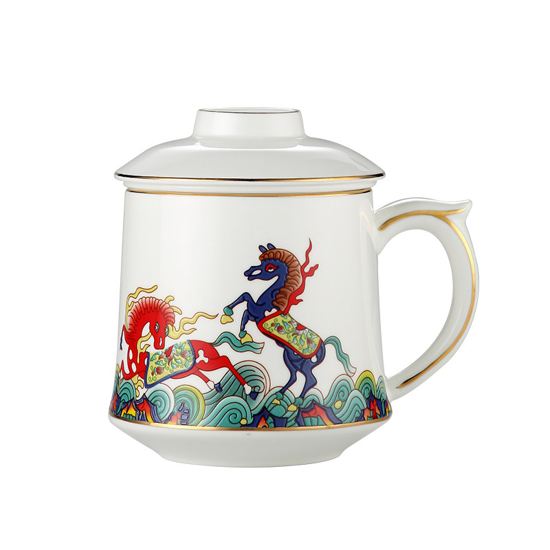600ml large capacity ceramic cup with lid with tea leakage bone porcelain water glass home tea cup tea water separation office horse