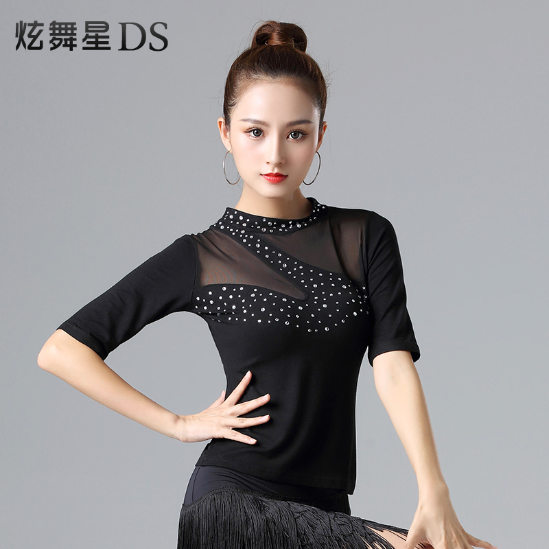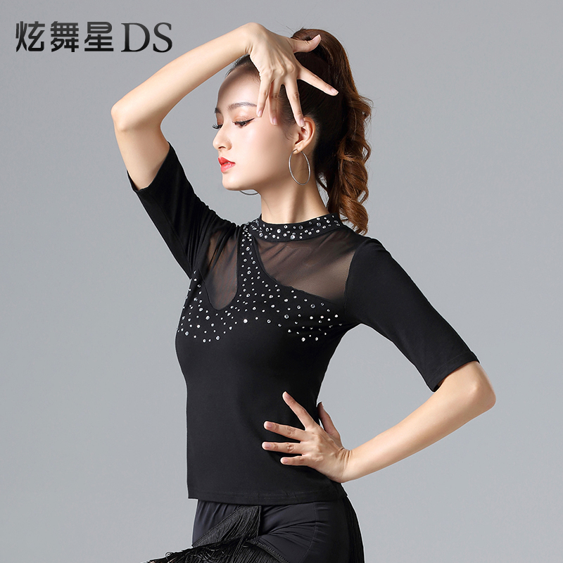 Latin dance clothes top female adult new training clothes sexy performance clothes mesh social dance clothes dancing clothes