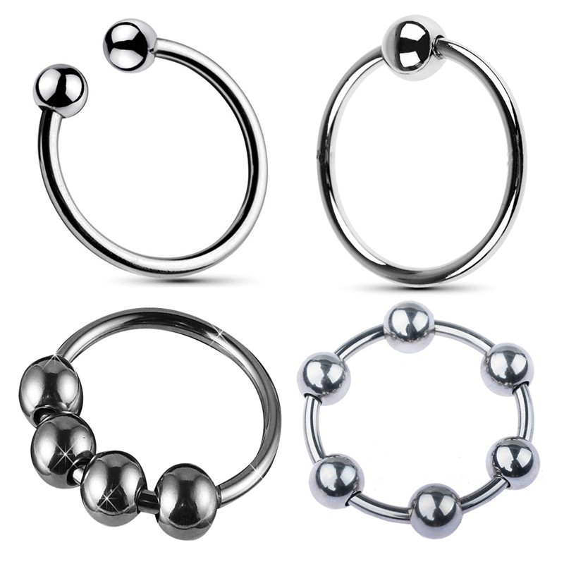 Gay male gay sex four beads metal stainless steel penis ring JJ ring glans ring alternative penis lock fine ring