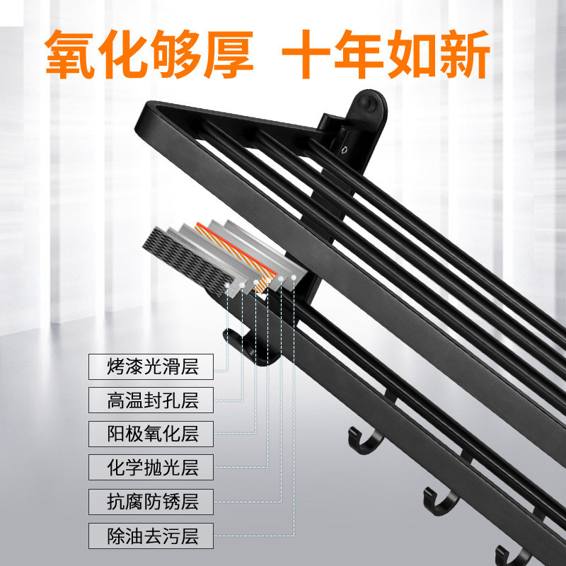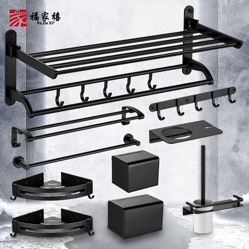 Bathroom towel rack space aluminum towel rack Powder room shelf wall-mounted non-perforated pendant set Nordic black