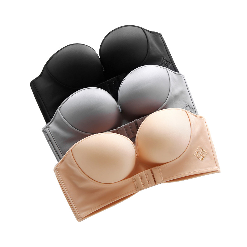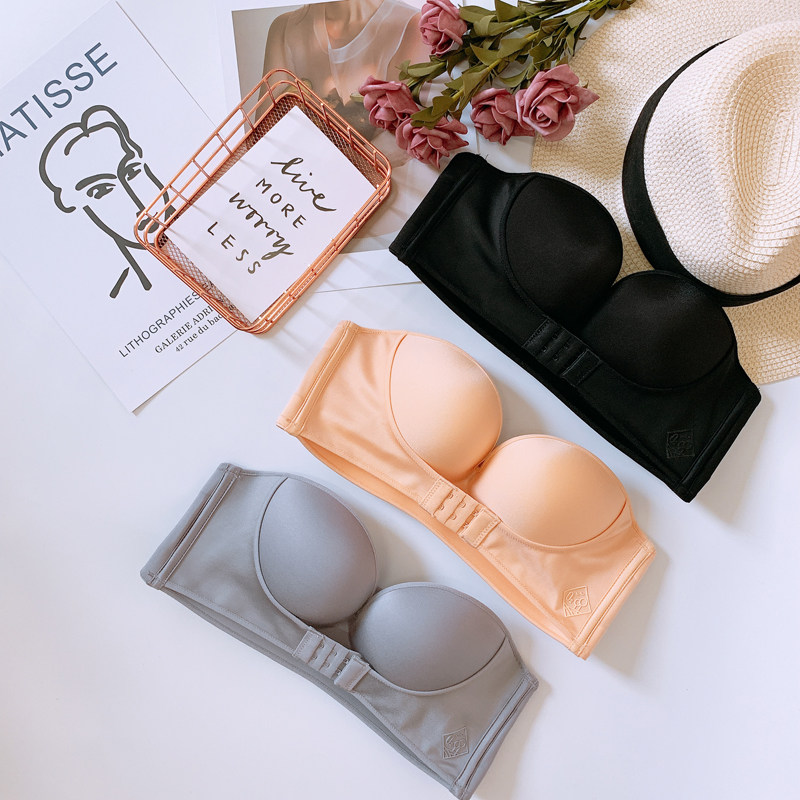 Super-gathered strapless bra off-the-shoulder, traceless, underwire-free thin oversized one-line collar non-slip bandeau concealed underwear