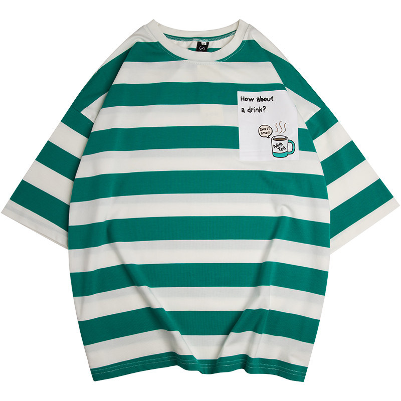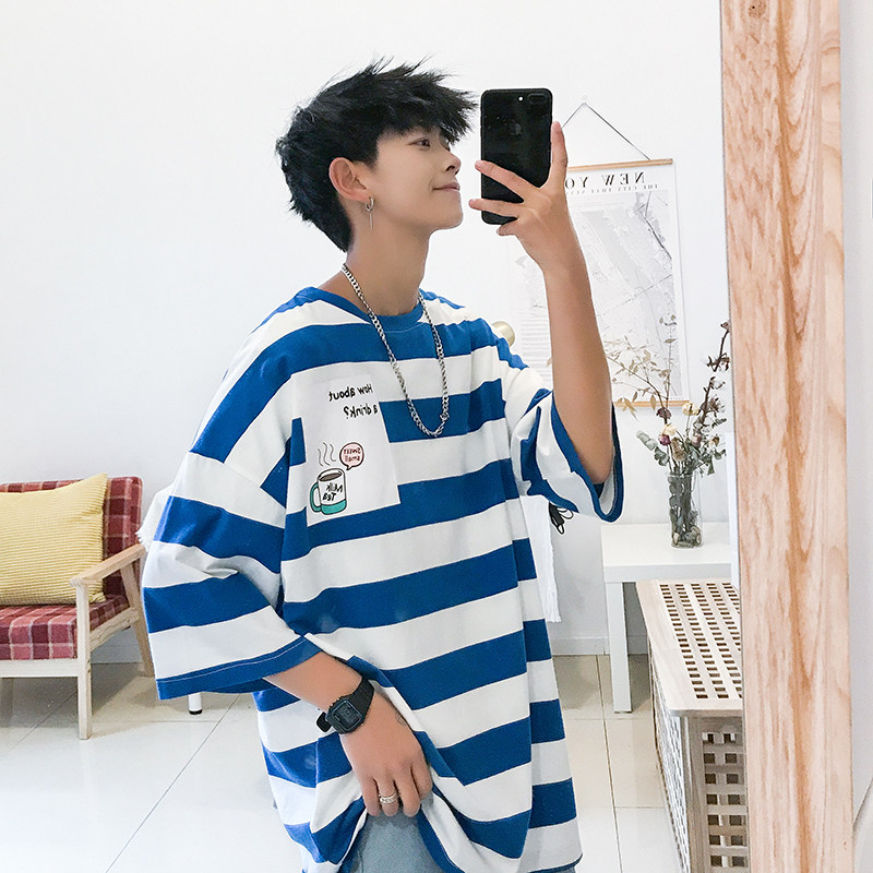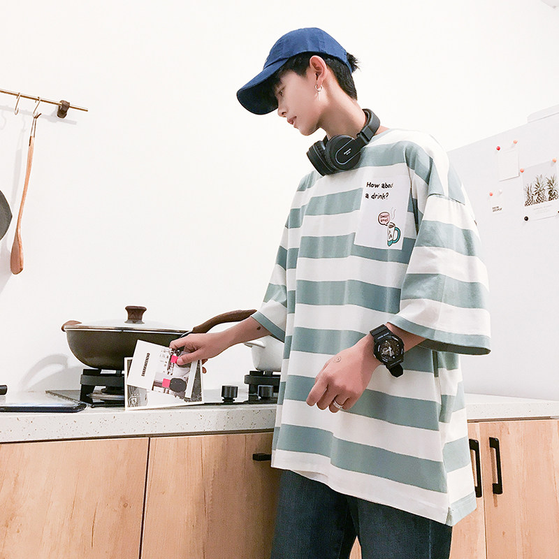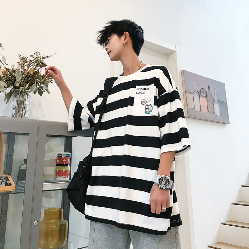 Striped short-sleeved men's Korean version of the trendy all-match tide brand student half-sleeved T-shirt cec super hot loose youth clothes