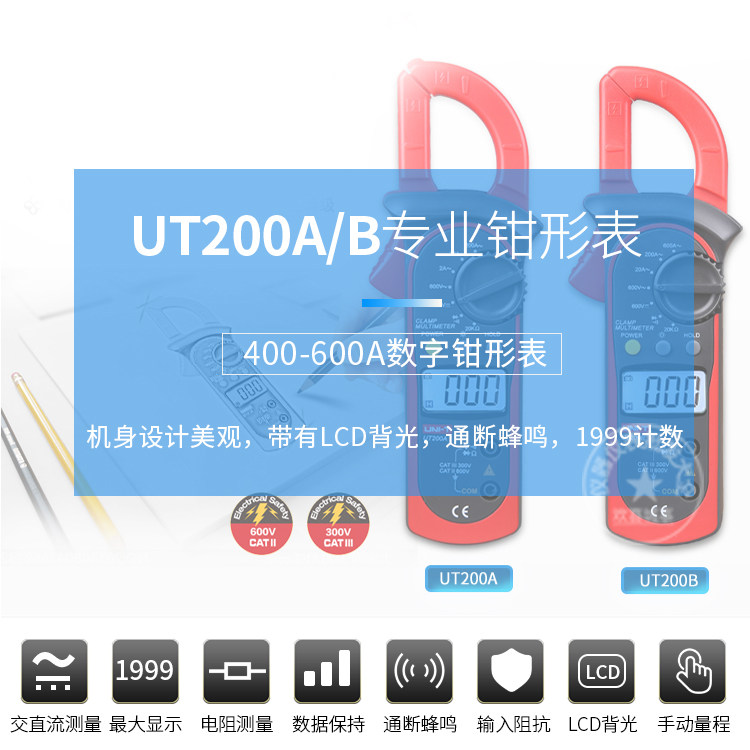 Ulysses digital clamp multimeter UT200A UT200B clamp ammeter resistance AC test backlight