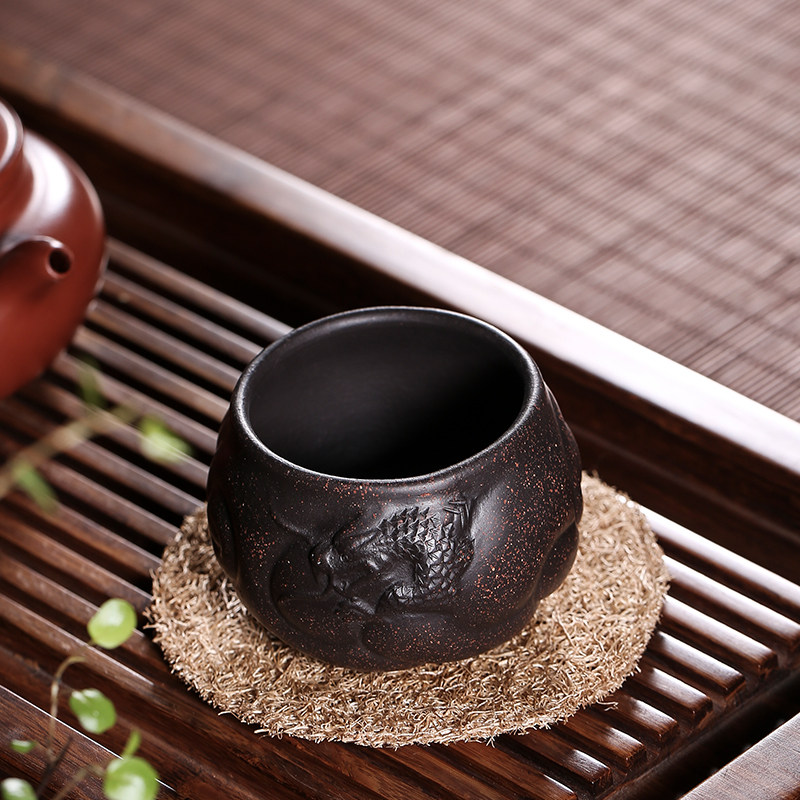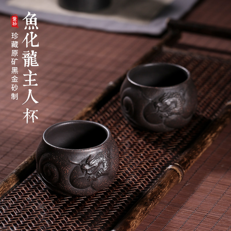 Fisherdragon individual cup Yixing purple sand small cup sample tea cup black gold just hand-painted small tea bowl high-end gift box