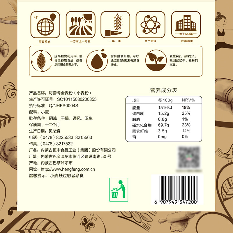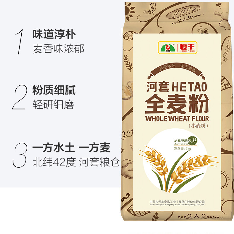 Hetao Flour Whole Wheat Flour 2kg × 1 bag of high gluten flour containing wheat bran flour baked coarse grain household bread wheat flour