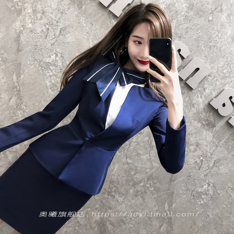 Famous Yuan Flight Attendant Uniform Professional Suit Positive Dress Woman High-end Interview Suit Woman woman to serve as qi goddess Fan