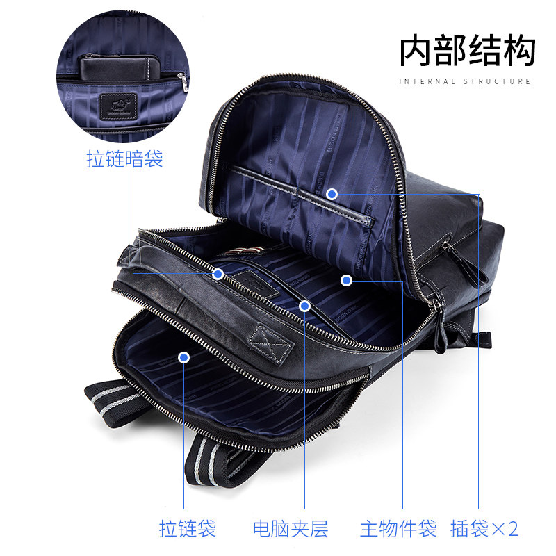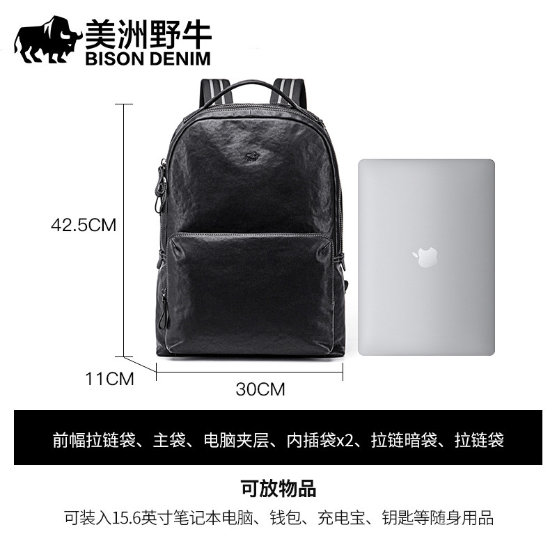 American bison backpack men's leather large-capacity computer bag fashion trend backpack multi-functional business men's bag