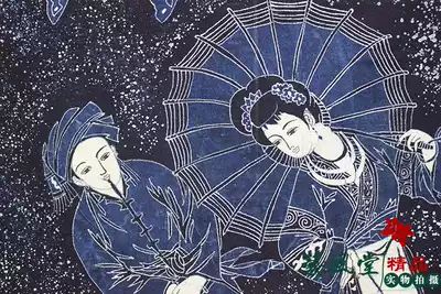 Lusheng Dance Miao Batik Painting Ethnic Handicraft Blue Dyeing Cloth Painting Dining Room Inn Corridor Background Decorative Mural Painting