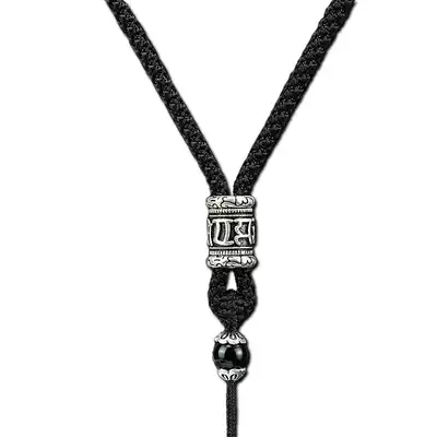 Six-character mania pendant pendant rope hanging rope handmade rope silver Amber obsidian rope