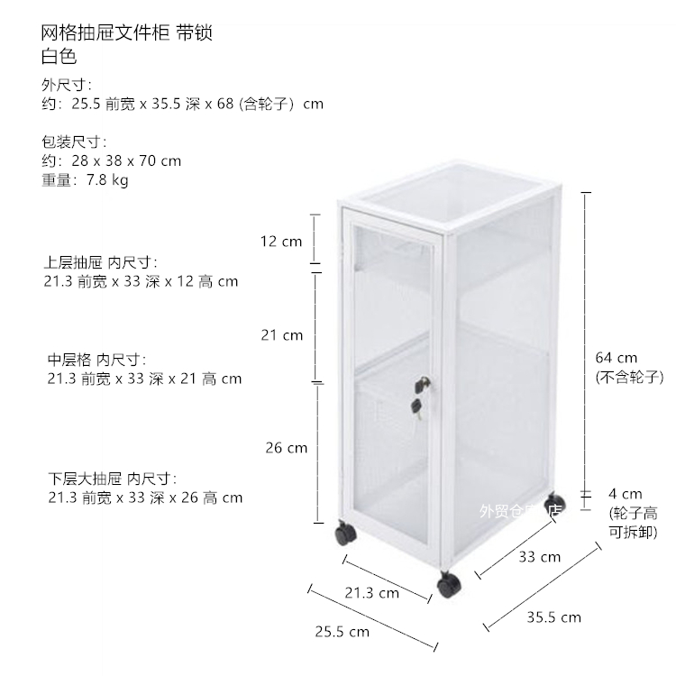 Metal grid drawer file cabinet desk cabinet with lock universal wheel storage cabinet office cabinet floor basket cabinet