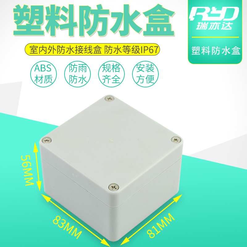 Indoor and outdoor waterproof box wiring terminal circuit board box black small 83*81*56mm F25 rainproof plastic