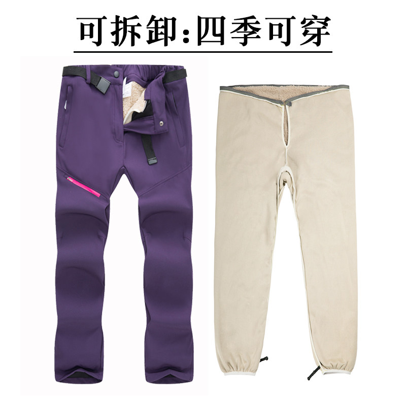 Pant pants men's gush thickened with detachable female autumn and winter warm skiing pants windproof and waterproof climbing pants softshell pants tide