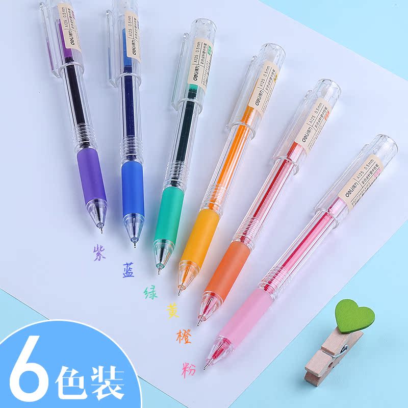 Deli color gel pen for taking notes Special hand account pen black pen Student water-based pen quick-drying cute full needle tube multi-color red pen in one candy color 0 5mm hand account neutral note pen set
