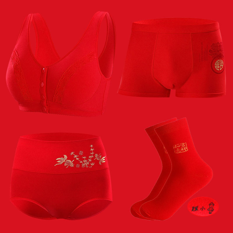 Female large red pure color (cardioloux) suit women's big red fonds (cardioux) suit women's big red pure color (cardioux) suit 2 socks female big red fu character (cardiolon) suit 2