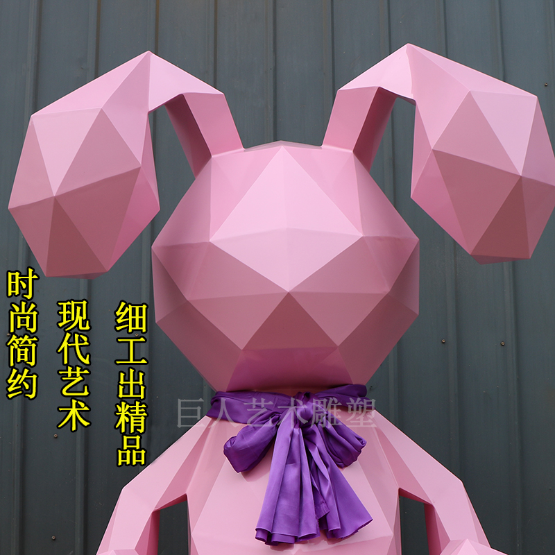 Geometry Rabbit Sculpture Outdoor Red Cartoon FRP Swing Parts Stainless Steel Animal Square Beauty Chen Chao Decoration