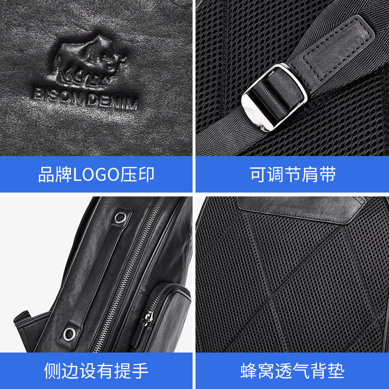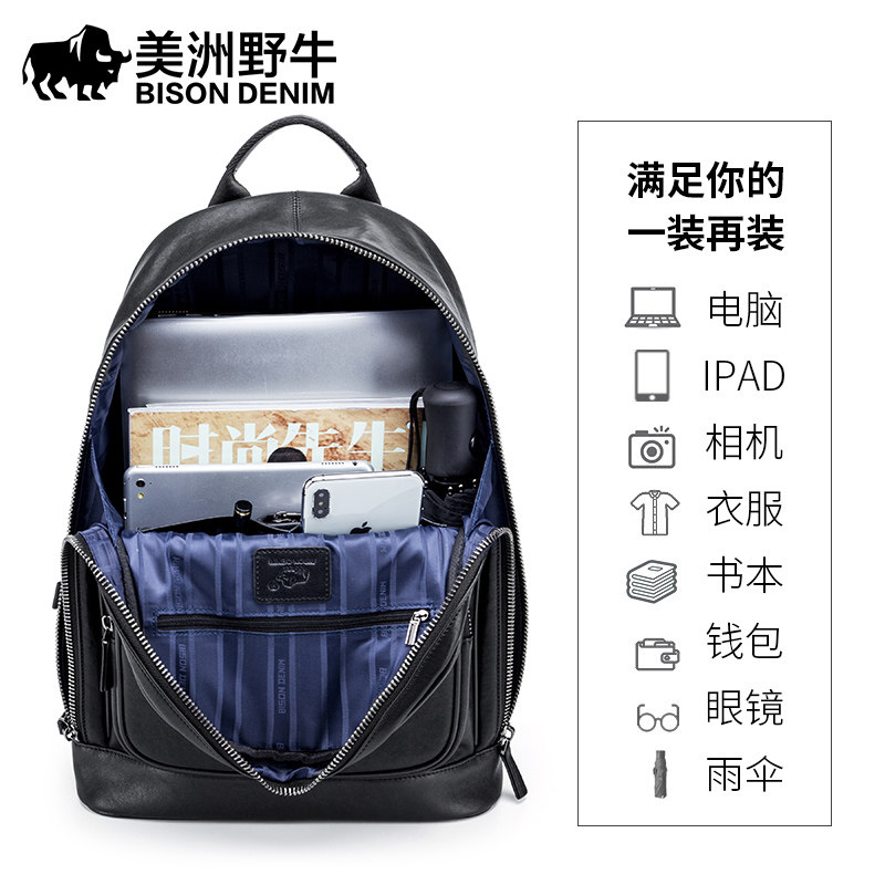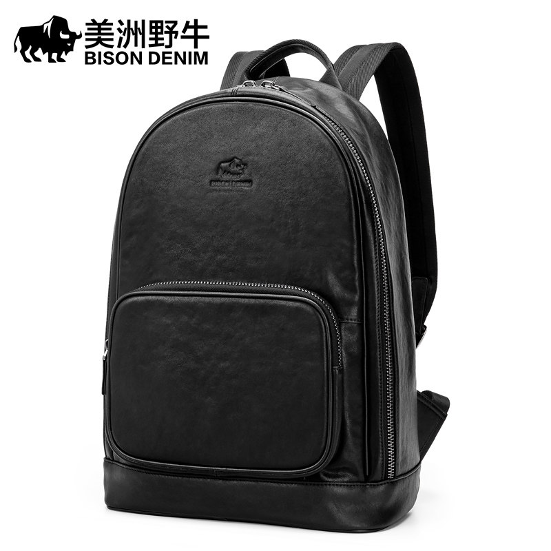 American bison men's backpack leather business large-capacity computer bag travel bag school bag Korean casual backpack