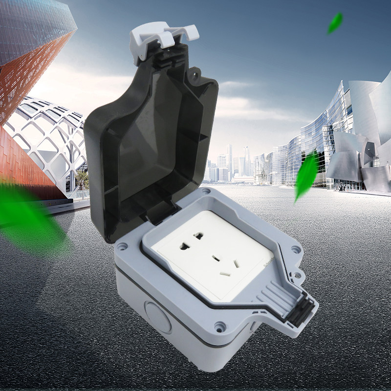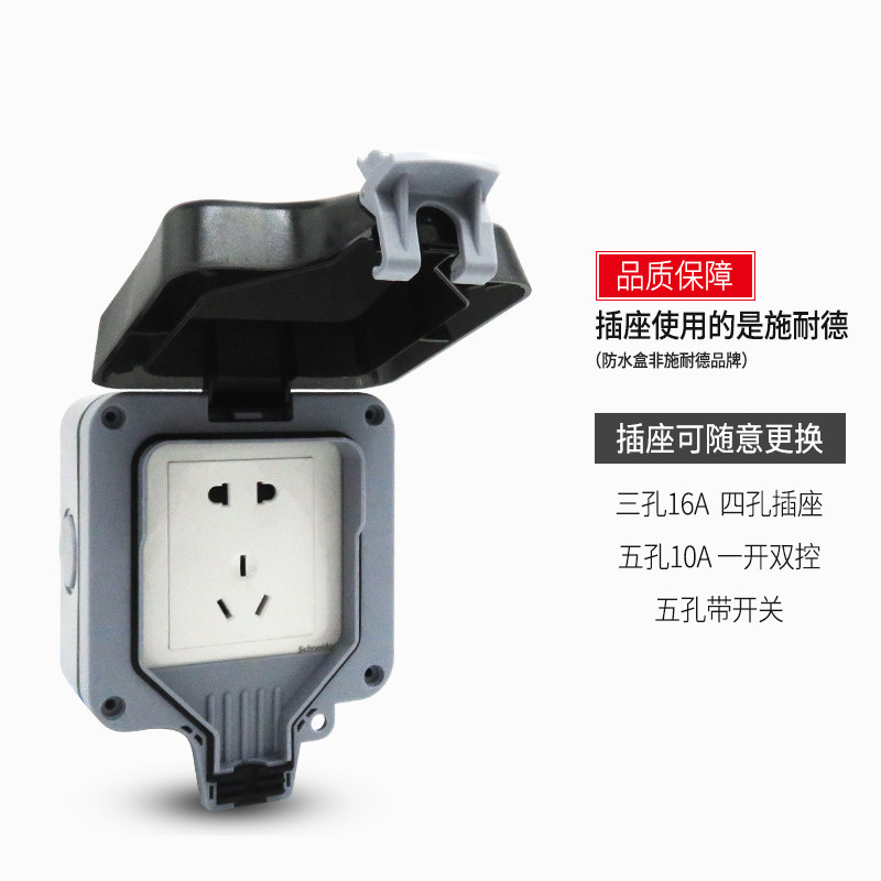 Schneider waterproof box outdoor waterproof socket surface mounted five-hole 10A household power outlet outdoor rainproof