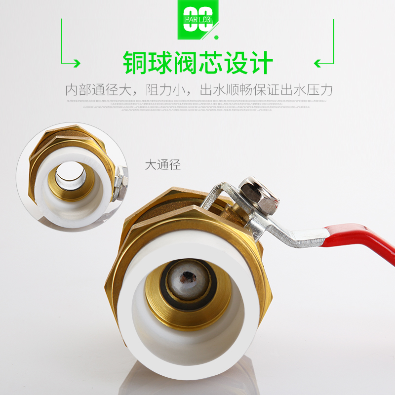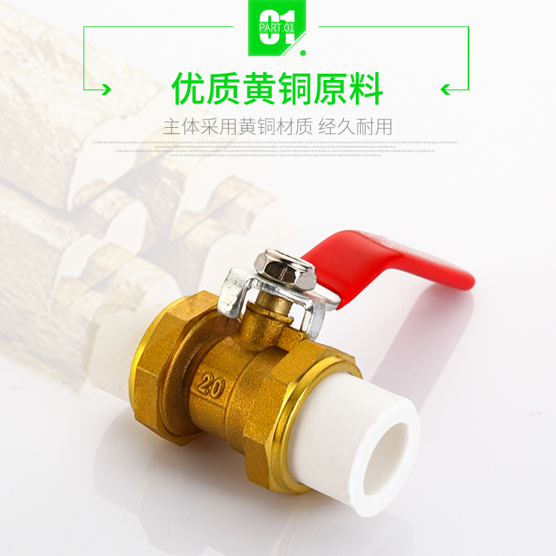 ppr Water Pipe Copper Ball Valve Switch Joint Hot Melt ppr Water Pipe Fitting 6 1/2 "DN25 Double End Live Valve