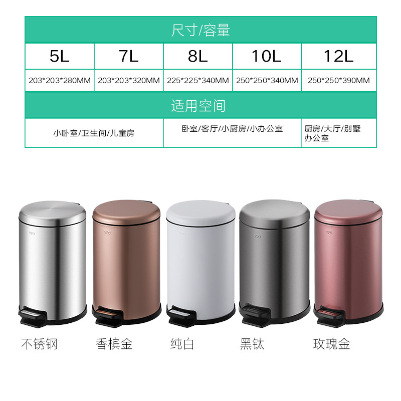 Home pedaling with lid round trash can living room Kitchen Makeup room Chinese 304 Stainless Steel Thickened deodorant
