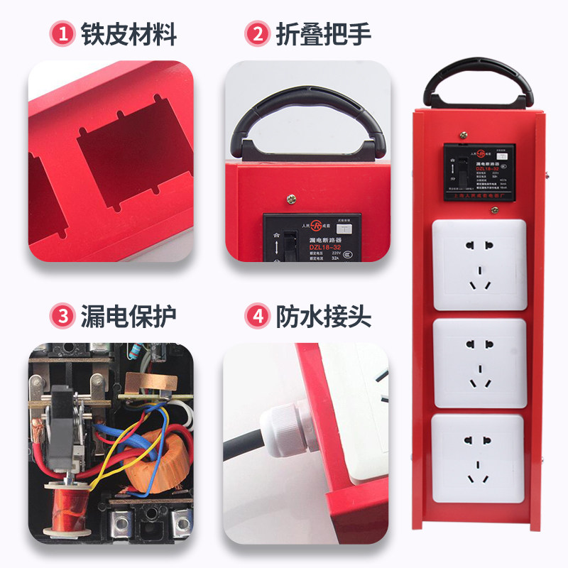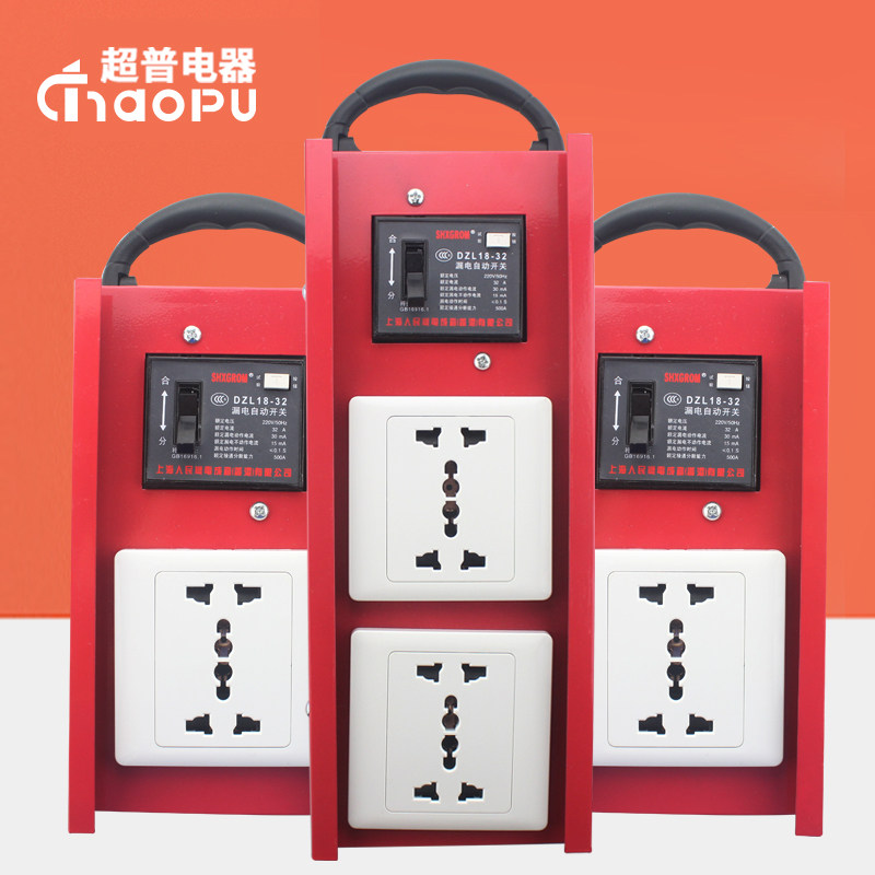 Construction site temporary mobile portable socket small electric box leakage protector portable 86 Type six-hole plugboard resistant to fall iron