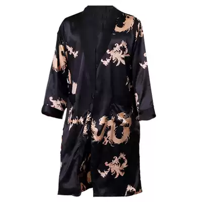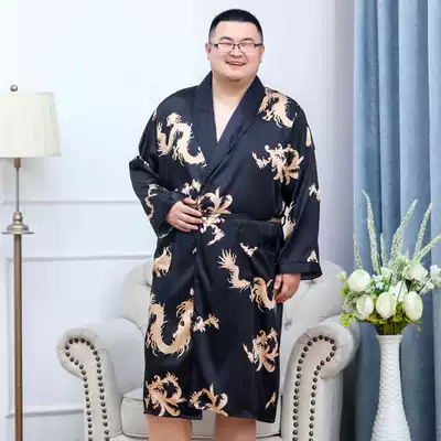 Ice silk nightgown men's summer couple plus fat plus size silk thin suit home clothes Dragon fat guy bathrobe