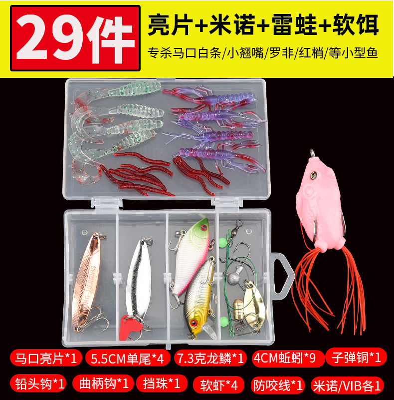 77 sets(fly hook melon seed sequins) 29 sets (sequins soft bait lead head hook) 7 sets (Mino sequins Grasshopper wave climb) Five-color Mino slow sink set Pencil set small