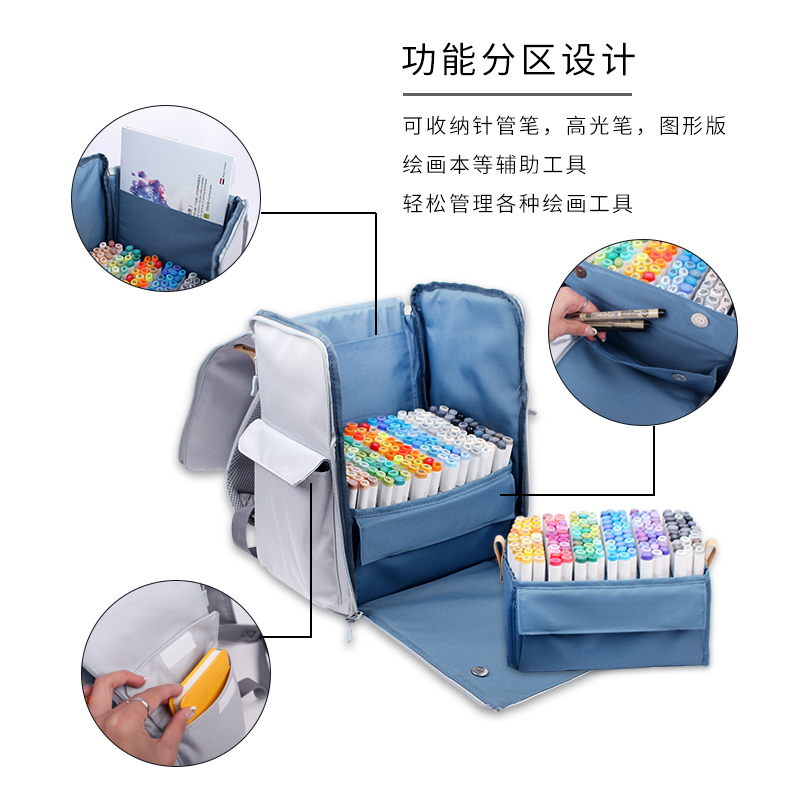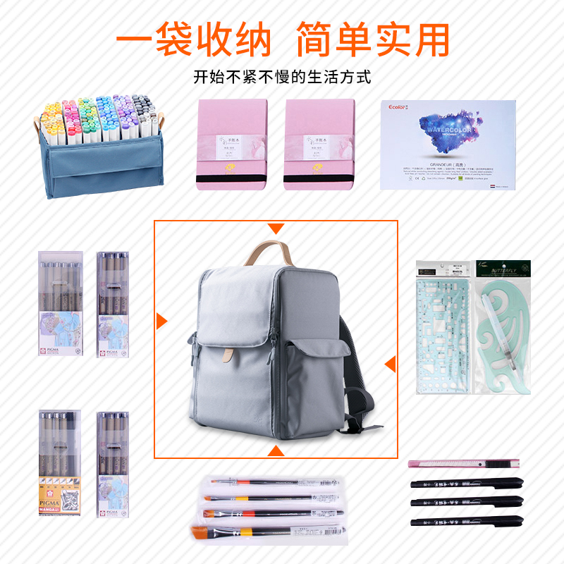 Mark Pen Bag Stratix Partition Super Capacity Mark Pen Bag Double Shoulder Backpack Art Examination Student Painting Cashier Bag-Taobao