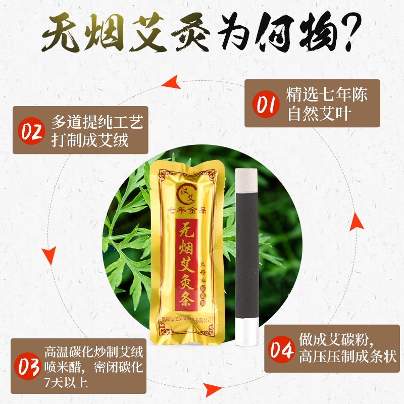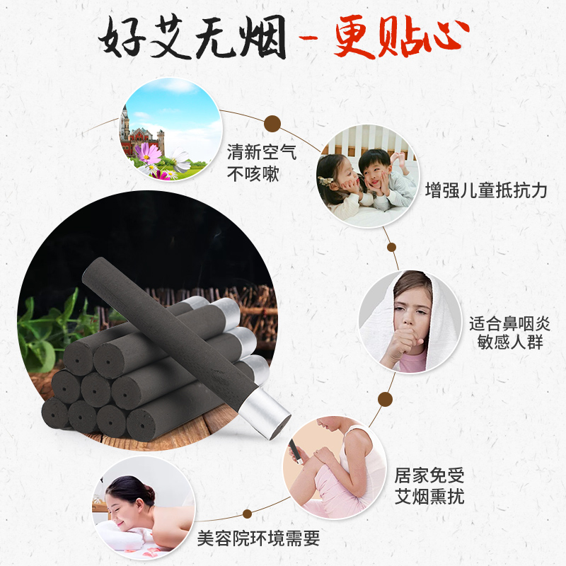 Smoke-free moxa moxa stick home palace cold dampness beauty salon pure moxa seven-year-old black carbonized moxibustion grass strips