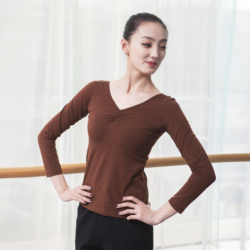 Dance practice clothes adults long-sleeved V-neck national dance dance clothes female adult dance clothes ballet body clothes