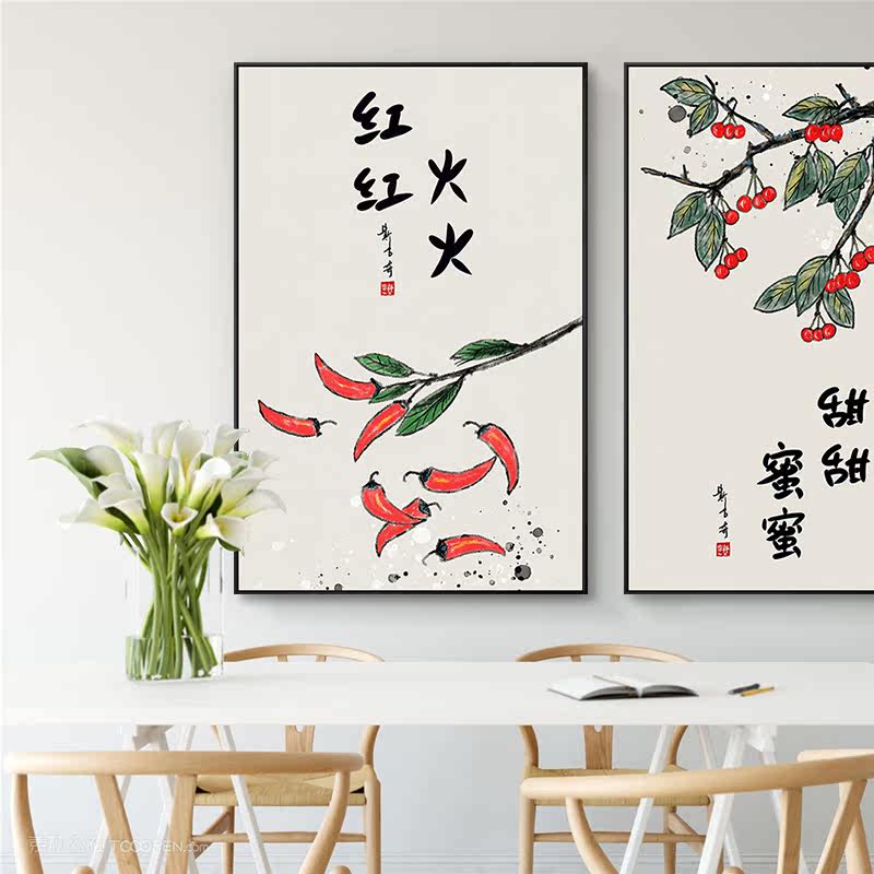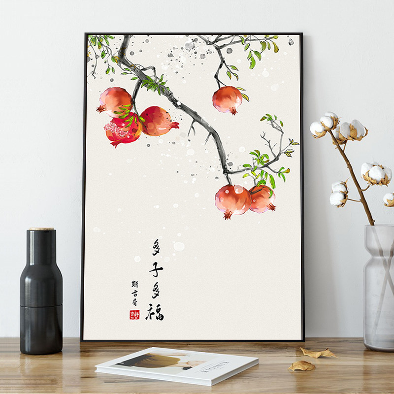 New Chinese style Duozi Duofu dining room hanging painting living room sofa background wall decorative painting pomegranate porch corridor wall mural