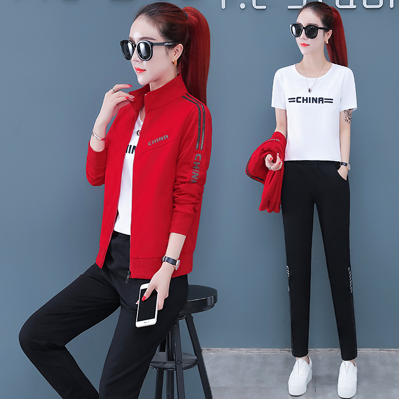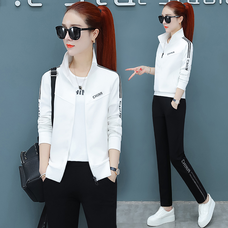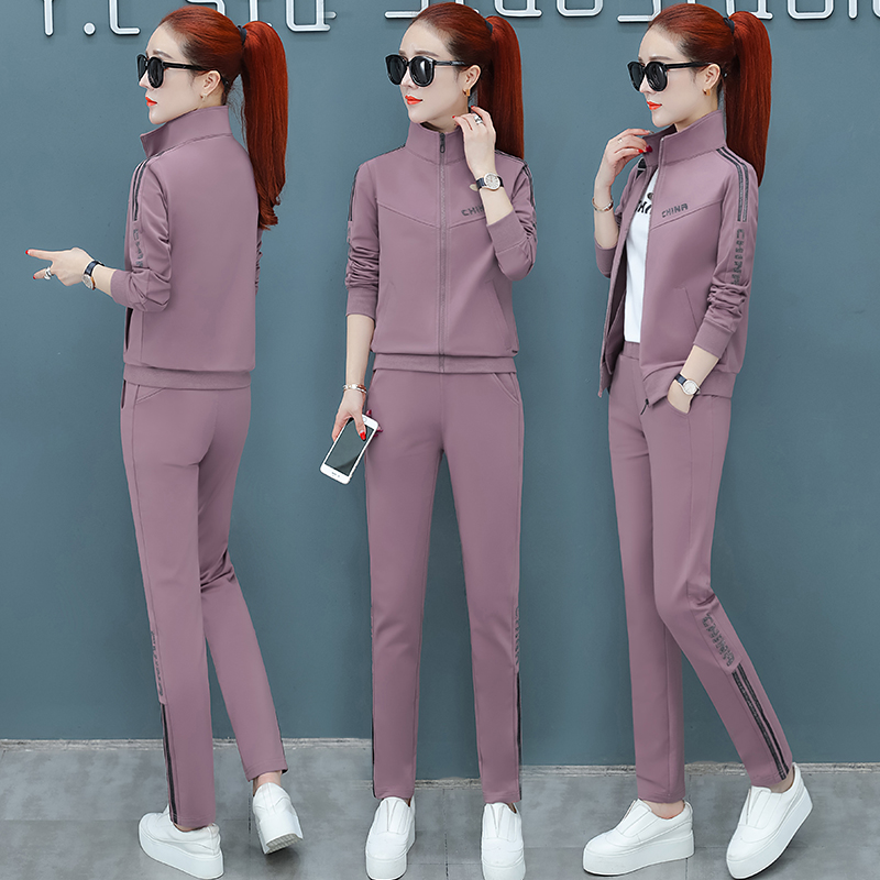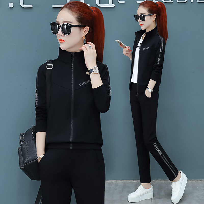Casual sportswear suit female spring and autumn fashion small man is thin age reduction large size sweater three-piece suit trendy brand western style